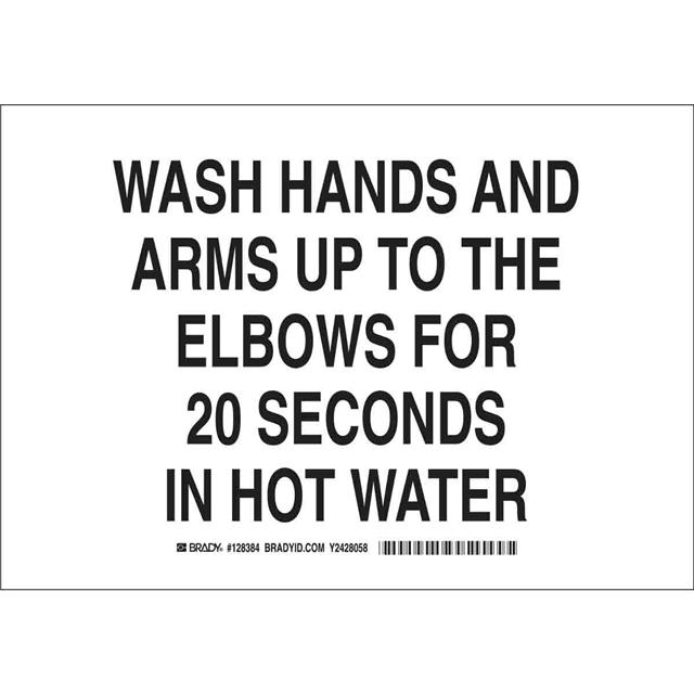 This is manufactured by Brady Corporation. The manufacturer part number is 128386. Label with a size of 14.00" l x 10.00" w (355.6mm x 254.0mm). The product is rohs3 compliant. It is assigned with possible HTSUS value of 3926.90.9985. It is shipped in bulk package . It has a classic black legend, white background colour. The product brady®, is a highly preferred choice for users. The product is made from highly stable and reliable polyester. In addition, it is reach unaffected. Its typical moisture sensitivity level is not applicable. A bespoke label is a wash hands and arms up to the elbows for 20 seconds in hot water label. It has a long 4 weeks standard lead time. The product is designated with the ear99 code number.