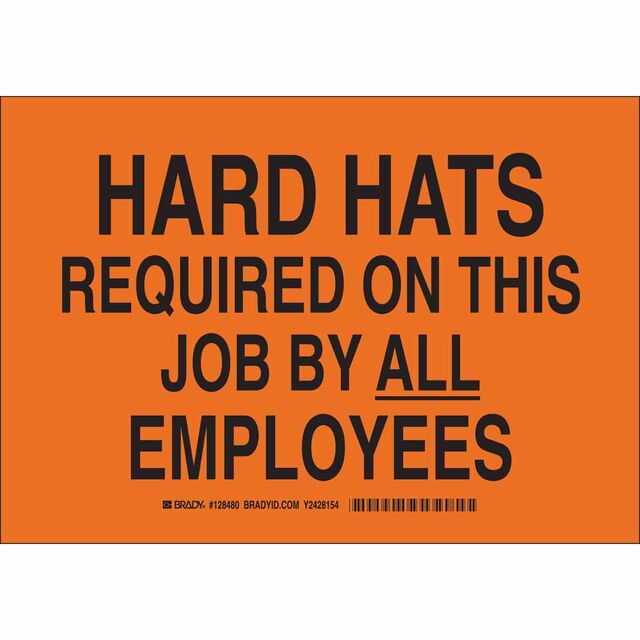 This is manufactured by Brady Corporation. The manufacturer part number is 128479. Label with a size of 10.00" l x 7.00" w (254.0mm x 177.8mm). The product is rohs3 compliant. It is assigned with possible HTSUS value of 3926.90.9989. It has a classic black legend, orange background colour. The product brady®, is a highly preferred choice for users. The product is made from highly stable and reliable polyester. In addition, it is reach unaffected. Its typical moisture sensitivity level is not applicable. In addition, bulk is the available packaging type of the product. A bespoke label is a hard hats. required on this job by all employees label. The brady corporation's product offers user-desired applications. The product is designated with the ear99 code number.