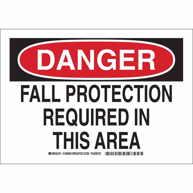 This is manufactured by Brady Corporation. The manufacturer part number is 128694. Label with a size of 10.00" l x 7.00" w (254.0mm x 177.8mm). The product is rohs3 compliant. It is assigned with possible HTSUS value of 8310.00.0000. It has a classic black and red legend, white background colour. The product brady®, is a highly preferred choice for users. The product is made from highly stable and reliable aluminum. In addition, it is reach unaffected. Its typical moisture sensitivity level is not applicable. In addition, bulk is the available packaging type of the product. A bespoke label is a danger. fall protection required in this area label. It has a long 4 weeks standard lead time. The brady corporation's product offers user-desired applications. The product is designated with the ear99 code number.