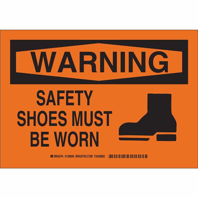 This is manufactured by Brady Corporation. The manufacturer part number is 129010. Label with a size of 14.00" l x 10.00" w (355.6mm x 254.0mm). The product is rohs3 compliant. It is assigned with possible HTSUS value of 3926.90.9985. It is shipped in bulk package . It has a classic black legend, orange background colour. The product brady®, is a highly preferred choice for users. The product is made from highly stable and reliable polyester. In addition, it is reach unaffected. Its typical moisture sensitivity level is not applicable. A bespoke label is a warning. safety shoes must be worn label. The product is suitable for use with warning. It has a long 4 weeks standard lead time. The product is designated with the ear99 code number.