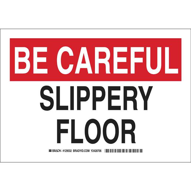 This is manufactured by Brady Corporation. The manufacturer part number is 129031. Label with a size of 10.00" l x 7.00" w (254.0mm x 177.8mm). The product is rohs3 compliant. It is assigned with possible HTSUS value of 3926.90.9985. It is shipped in bulk package . It has a classic black and red legend, white background colour. The product brady®, is a highly preferred choice for users. The product is made from highly stable and reliable polyester. In addition, it is reach unaffected. Its typical moisture sensitivity level is not applicable. A bespoke label is a be careful. slippery floor label. The product is designated with the ear99 code number.