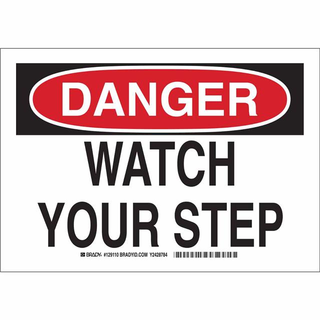This is manufactured by Brady Corporation. The manufacturer part number is 129108. Label with a size of 10.00" l x 7.00" w (254.0mm x 177.8mm). The product is rohs3 compliant. It is assigned with possible HTSUS value of 8310.00.0000. It is shipped in bulk package . It has a classic black and red legend, white background colour. The product brady®, is a highly preferred choice for users. The product is made from highly stable and reliable aluminum. In addition, it is reach unaffected. Its typical moisture sensitivity level is not applicable. A bespoke label is a danger. watch your step label. The product is suitable for use with danger. It has a long 4 weeks standard lead time. The product is designated with the ear99 code number.