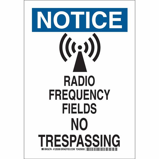 This is manufactured by Brady Corporation. The manufacturer part number is 129310. Label with a size of 14.00" l x 10.00" w (355.6mm x 254.0mm). The product is rohs3 compliant. It is assigned with possible HTSUS value of 3926.90.9985. It is shipped in bulk package . It has a classic black and blue legend, white background colour. The product brady®, is a highly preferred choice for users. The product is made from highly stable and reliable polyester. In addition, it is reach unaffected. Its typical moisture sensitivity level is not applicable. A bespoke label is a notice. radio frequency fields no trespassing label. The product is suitable for use with notice. It has a long 4 weeks standard lead time. The product is designated with the ear99 code number.