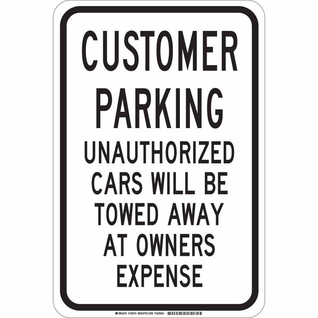 This is manufactured by Brady Corporation. The manufacturer part number is 129570. Label with a size of 18.00" l x 12.00" w (457.2mm x 304.8mm). The product is rohs3 compliant. It is assigned with possible HTSUS value of 8310.00.0000. It has a classic black legend, white background colour. The product brady®, is a highly preferred choice for users. The product is made from highly stable and reliable aluminum. In addition, it is reach unaffected. Its typical moisture sensitivity level is not applicable. In addition, bulk is the available packaging type of the product. A bespoke label is a customer parking. unauthorized cars will be towed away at owners expense label. It has a long 4 weeks standard lead time. The brady corporation's product offers user-desired applications. The product is designated with the ear99 code number.