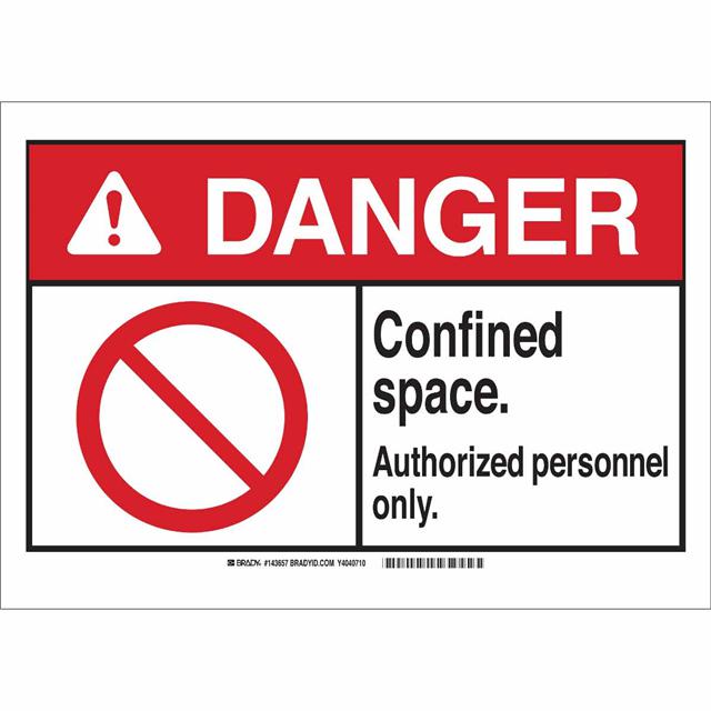 This is manufactured by Brady Corporation. The manufacturer part number is 143659. Label with a size of 10.00" l x 7.00" w (254.0mm x 177.8mm). The product is rohs3 compliant. It is assigned with possible HTSUS value of 3926.90.9985. It is shipped in bulk package . It has a classic black and red legend, white background colour. The product brady®, is a highly preferred choice for users. The product is made from highly stable and reliable polyester. In addition, it is reach unaffected. Its typical moisture sensitivity level is not applicable. A bespoke label is a danger. confined space authorized personnel only label. The product is designated with the ear99 code number.