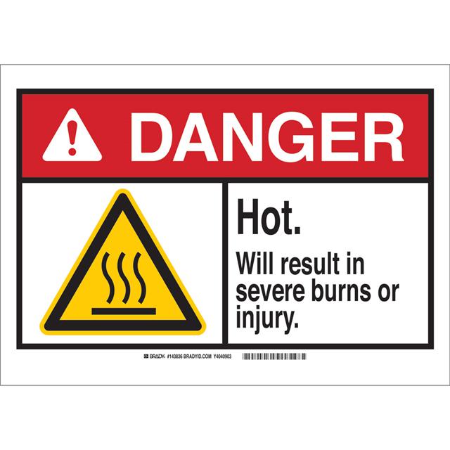 This is manufactured by Brady Corporation. The manufacturer part number is 143836. Label with a size of 14.00" l x 10.00" w (355.6mm x 254.0mm). The product is rohs3 compliant. It is assigned with possible HTSUS value of 3926.90.9985. It is shipped in bulk package . It has a classic black, red and yellow legend, white background colour. The product brady®, is a highly preferred choice for users. The product is made from highly stable and reliable fiberglass. In addition, it is reach unaffected. Its typical moisture sensitivity level is not applicable. A bespoke label is a danger. hot. will cause severe burns or injury label. The product is suitable for use with danger. The product is designated with the ear99 code number.