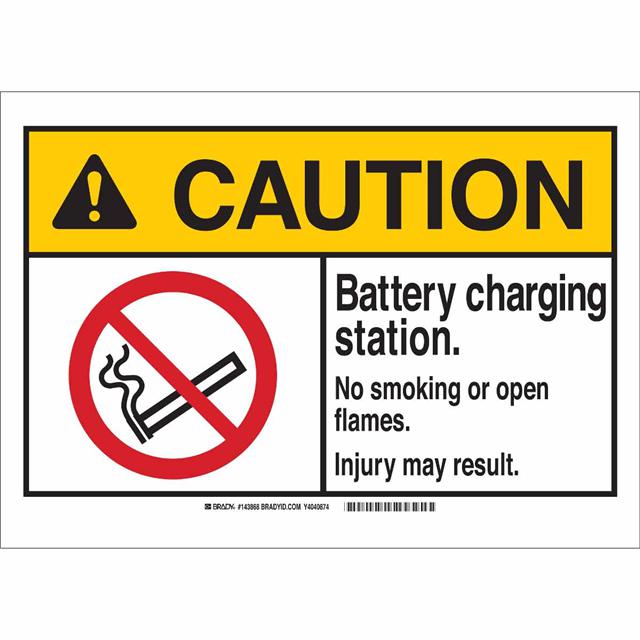 This is manufactured by Brady Corporation. The manufacturer part number is 143867. Label with a size of 10.00" l x 7.00" w (254.0mm x 177.8mm). The product is rohs3 compliant. It is assigned with possible HTSUS value of 3926.90.9985. It is shipped in bulk package . It has a classic black, red and yellow legend, white background colour. The product brady®, is a highly preferred choice for users. The product is made from highly stable and reliable polyester. In addition, it is reach unaffected. Its typical moisture sensitivity level is not applicable. A bespoke label is a caution. battery charging station. no smoking or open flames. injury may result label. It has a long 4 weeks standard lead time. The product is designated with the ear99 code number.
