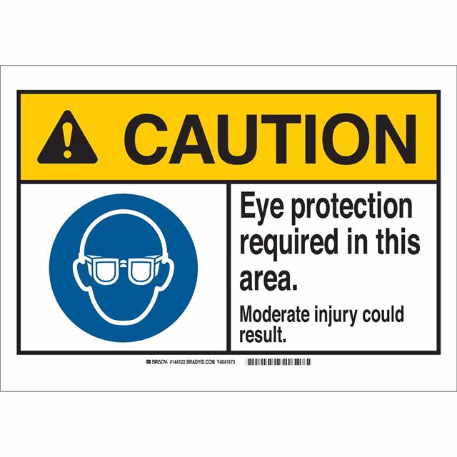 This is manufactured by Brady Corporation. The manufacturer part number is 144121. Label with a size of 10.00" l x 7.00" w (254.0mm x 177.8mm). The product is rohs3 compliant. It is assigned with possible HTSUS value of 3926.90.9985. It is shipped in bulk package . It has a classic black, blue and yellow legend, white background colour. The product brady®, is a highly preferred choice for users. The product is made from highly stable and reliable polyester. In addition, it is reach unaffected. Its typical moisture sensitivity level is not applicable. A bespoke label is a caution. eye protection required in this area. moderate injury could result label. It has a long 4 weeks standard lead time. The product is designated with the ear99 code number.