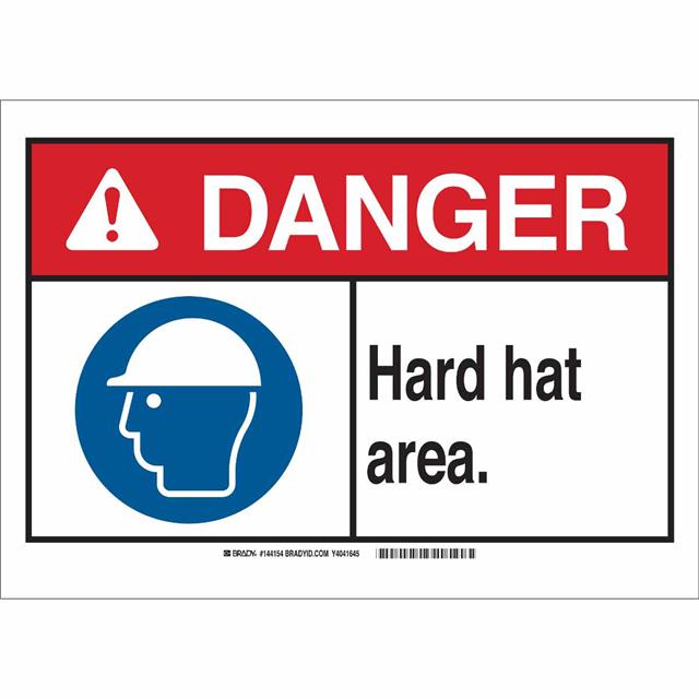 This is manufactured by Brady Corporation. The manufacturer part number is 144155. Label with a size of 10.00" l x 7.00" w (254.0mm x 177.8mm). The product is rohs3 compliant. It is assigned with possible HTSUS value of 8310.00.0000. It is shipped in bulk package . It has a classic black, blue and red legend, white background colour. The product brady®, is a highly preferred choice for users. The product is made from highly stable and reliable aluminum. In addition, it is reach unaffected. Its typical moisture sensitivity level is not applicable. A bespoke label is a danger. hard hat area label. It has a long 4 weeks standard lead time. The product is designated with the ear99 code number.