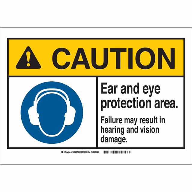 This is manufactured by Brady Corporation. The manufacturer part number is 144284. Label with a size of 10.00" l x 7.00" w (254.0mm x 177.8mm). The product is rohs3 compliant. It is assigned with possible HTSUS value of 8310.00.0000. It is shipped in bulk package . It has a classic black and yellow legend, white background colour. The product brady®, is a highly preferred choice for users. The product is made from highly stable and reliable aluminum. In addition, it is reach unaffected. Its typical moisture sensitivity level is not applicable. A bespoke label is a caution. ear and eye protection area. failure may result in hearing and vision damage label. It has a long 4 weeks standard lead time. The product is designated with the ear99 code number.
