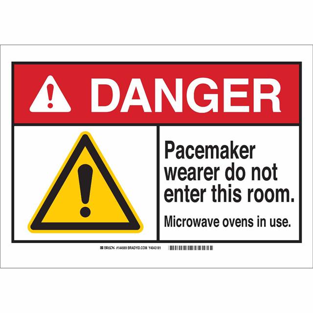 This is manufactured by Brady Corporation. The manufacturer part number is 144572. Label with a size of 10.00" l x 7.00" w (254.0mm x 177.8mm). The product is rohs3 compliant. It is assigned with possible HTSUS value of 8310.00.0000. It is shipped in bulk package . It has a classic black, red and yellow legend, white background colour. The product brady®, is a highly preferred choice for users. The product is made from highly stable and reliable aluminum. In addition, it is reach unaffected. Its typical moisture sensitivity level is not applicable. A bespoke label is a danger. pacemaker wearer do not enter this room. microwave ovens in use label. The product is suitable for use with danger. The product is designated with the ear99 code number.