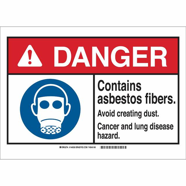 This is manufactured by Brady Corporation. The manufacturer part number is 144939. Label with a size of 10.00" l x 7.00" w (254.0mm x 177.8mm). The product is rohs3 compliant. It is assigned with possible HTSUS value of 3926.90.9989. It has a classic black, red and yellow legend, white background colour. The product brady®, is a highly preferred choice for users. The product is made from highly stable and reliable polyester. In addition, it is reach unaffected. Its typical moisture sensitivity level is not applicable. In addition, bulk is the available packaging type of the product. A bespoke label is a danger. contains asbestos fibers. avoid creating dust. cancer and lung disease hazard label. It has a long 4 weeks standard lead time. The brady corporation's product offers user-desired applications. The product is designated with the ear99 code number.