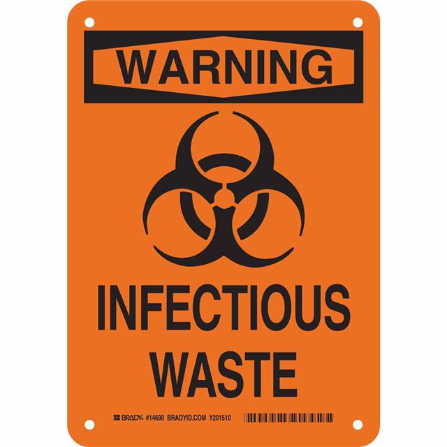 This is manufactured by Brady Corporation. The manufacturer part number is 14690. Label with a size of 10.00" l x 7.00" w (254.0mm x 177.8mm). The product is rohs3 compliant. It is assigned with possible HTSUS value of 3926.90.9985. It is shipped in bulk package . It has a classic black legend, orange background colour. The product brady®, is a highly preferred choice for users. The product is made from highly stable and reliable polyester. In addition, it is reach unaffected. Its typical moisture sensitivity level is not applicable. A bespoke label is a warning. infectious waste label. The product is suitable for use with notice. The product is designated with the ear99 code number.