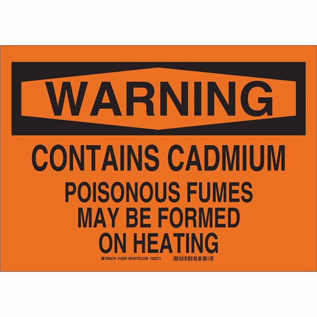 This is manufactured by Brady Corporation. The manufacturer part number is 16028. Label with a size of 14.00" l x 10.00" w (355.6mm x 254.0mm). The product is rohs3 compliant. It is assigned with possible HTSUS value of 3926.90.9985. It is shipped in bulk package . It has a classic black legend, orange background colour. The product brady®, is a highly preferred choice for users. The product is made from highly stable and reliable polyester. In addition, it is reach unaffected. Its typical moisture sensitivity level is not applicable. A bespoke label is a warning. contains cadmium poisonous fumes may be formed on heating label. The product is suitable for use with warning. It has a long 4 weeks standard lead time. The product is designated with the ear99 code number.