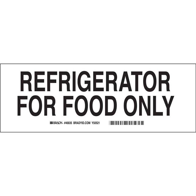 This is manufactured by Brady Corporation. The manufacturer part number is 20097JLS. Label with a size of 10.00" l x 3.50" w (254.0mm x 88.9mm). The product is rohs3 compliant. It is assigned with possible HTSUS value of 8310.00.0000. It is shipped in bulk package . It has a classic black legend, white background colour. The product brady®, is a highly preferred choice for users. The product is made from highly stable and reliable aluminum. In addition, it is reach unaffected. Its typical moisture sensitivity level is not applicable. A bespoke label is a refrigerator for food only label. The product is suitable for use with warning. It has a long 4 weeks standard lead time. The product is designated with the ear99 code number.
