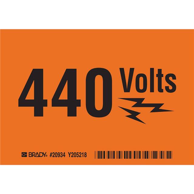 This is manufactured by Brady Corporation. The manufacturer part number is 20934. Label with a size of 5.00" l x 3.50" w (127.0mm x 88.9mm). The product is rohs3 compliant. It is assigned with possible HTSUS value of 3926.90.9985. It is shipped in bulk package . It has a classic black legend, orange background colour. The product brady®, is a highly preferred choice for users. The product is made from highly stable and reliable polyester. In addition, it is reach unaffected. Its typical moisture sensitivity level is not applicable. A bespoke label is a 440 volts label. The product is suitable for use with warning. It has a long 4 weeks standard lead time. The product is designated with the ear99 code number.