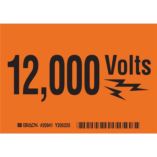 This is manufactured by Brady Corporation. The manufacturer part number is 20941. Label with a size of 5.00" l x 3.50" w (127.0mm x 88.9mm). The product is rohs3 compliant. It is assigned with possible HTSUS value of 3926.90.9985. It is shipped in bulk package . It has a classic black legend, orange background colour. The product brady®, is a highly preferred choice for users. The product is made from highly stable and reliable polyester. In addition, it is reach unaffected. Its typical moisture sensitivity level is not applicable. A bespoke label is a 12,000 volts label. The product is suitable for use with warning. It has a long 4 weeks standard lead time. The product is designated with the ear99 code number.