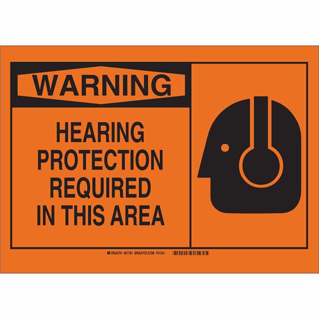 This is manufactured by Brady Corporation. The manufacturer part number is 21791. Label with a size of 10.00" l x 7.00" w (254.0mm x 177.8mm). The product is rohs3 compliant. It is assigned with possible HTSUS value of 3926.90.9985. It is shipped in bulk package . It has a classic black legend, orange background colour. The product brady®, is a highly preferred choice for users. The product is made from highly stable and reliable polyester. In addition, it is reach unaffected. Its typical moisture sensitivity level is not applicable. A bespoke label is a warning. hearing protection required in this area label. The product is suitable for use with warning. It has a long 4 weeks standard lead time. The product is designated with the ear99 code number.