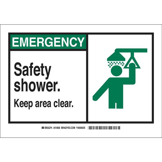 This is manufactured by Brady Corporation. The manufacturer part number is 21808. Label with a size of 10.00" l x 7.00" w (254.0mm x 177.8mm). The product is rohs3 compliant. It is assigned with possible HTSUS value of 3926.90.9985. It is shipped in bulk package . It has a classic black and green legend, white background colour. The product brady®, is a highly preferred choice for users. The product is made from highly stable and reliable polyester. In addition, it is reach unaffected. Its typical moisture sensitivity level is not applicable. A bespoke label is a emergency. safety shower keep area clear label. The product is suitable for use with emergency. It has a long 4 weeks standard lead time. The product is designated with the ear99 code number.