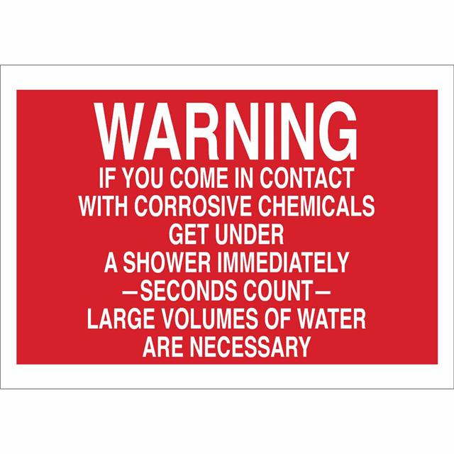 This is manufactured by Brady Corporation. The manufacturer part number is 22386. Label with a size of 10.00" l x 7.00" w (254.0mm x 177.8mm). The product is rohs3 compliant. It is assigned with possible HTSUS value of 3926.90.9985. It is shipped in bulk package . It has a classic white legend, red background colour. The product brady®, is a highly preferred choice for users. The product is made from highly stable and reliable polyester. In addition, it is reach unaffected. Its typical moisture sensitivity level is not applicable. A bespoke label is a warning. if you come in contact with corrosive chemicals get under a shower immediately seconds count large volumes of water a… label. The product is suitable for use with warning. It has a long 4 weeks standard lead time. The product is designated with the ear99 code number.