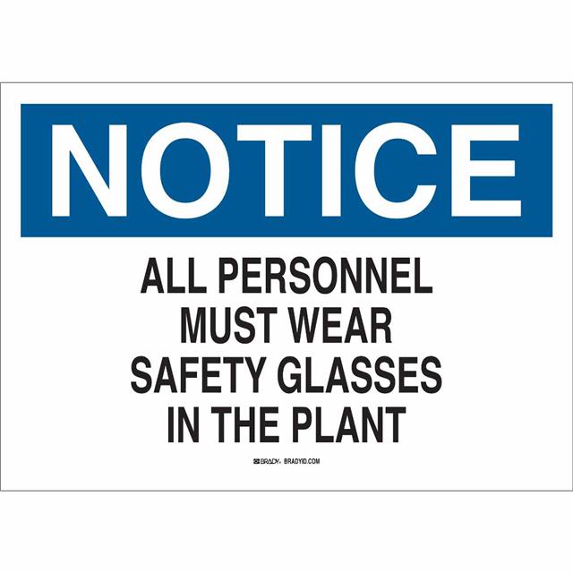This is manufactured by Brady Corporation. The manufacturer part number is 22622. Label with a size of 10.00" l x 7.00" w (254.0mm x 177.8mm). The product is rohs3 compliant. It is assigned with possible HTSUS value of 3926.90.9989. It has a classic black and blue legend, white background colour. The product brady®, is a highly preferred choice for users. The product is made from highly stable and reliable polyester. In addition, it is reach unaffected. Its typical moisture sensitivity level is not applicable. In addition, bulk is the available packaging type of the product. A bespoke label is a notice. all personnel must wear safety glasses in the plant label. The product is suitable for use with notice. The brady corporation's product offers user-desired applications. The product is designated with the ear99 code number.