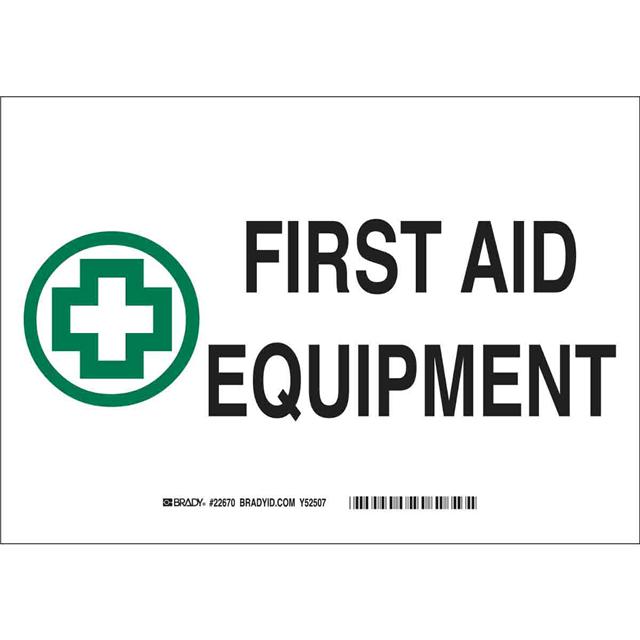 This is manufactured by Brady Corporation. The manufacturer part number is 22670. Label with a size of 10.00" l x 7.00" w (254.0mm x 177.8mm). The product is rohs3 compliant. It is assigned with possible HTSUS value of 3926.90.9989. It has a classic black and green legend, white background colour. The product brady®, is a highly preferred choice for users. The product is made from highly stable and reliable polyester. In addition, it is reach unaffected. Its typical moisture sensitivity level is not applicable. In addition, bulk is the available packaging type of the product. A bespoke label is a first aid equipment label. It has a long 4 weeks standard lead time. The brady corporation's product offers user-desired applications. The product is designated with the ear99 code number.