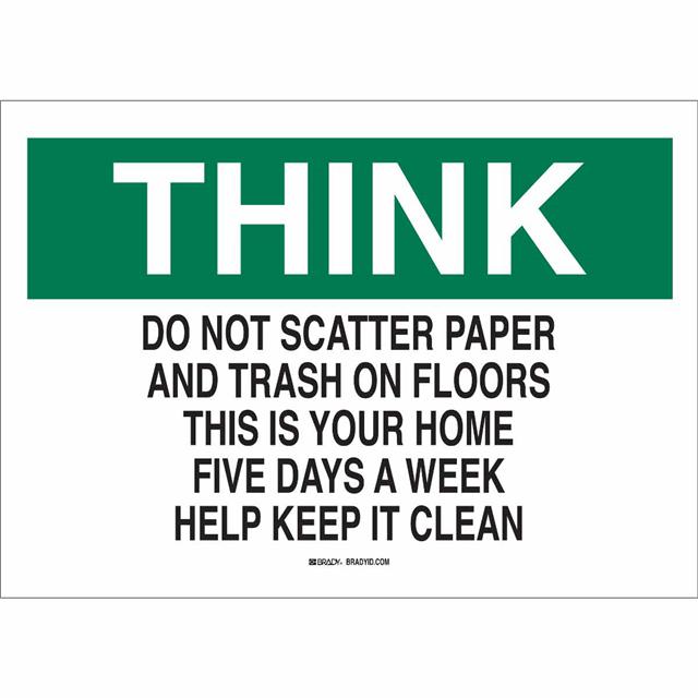 This is manufactured by Brady Corporation. The manufacturer part number is 22825. Label with a size of 10.00" l x 7.00" w (254.0mm x 177.8mm). The product is rohs3 compliant. It is assigned with possible HTSUS value of 3926.90.9985. It is shipped in bulk package . It has a classic black and green legend, white background colour. The product brady®, is a highly preferred choice for users. The product is made from highly stable and reliable polyester. In addition, it is reach unaffected. Its typical moisture sensitivity level is not applicable. A bespoke label is a think. do not scatter paper and trash on floors this is your home five days a week help keep it clean label. The product is suitable for use with warning. It has a long 4 weeks standard lead time. The product is designated with the ear99 code number.