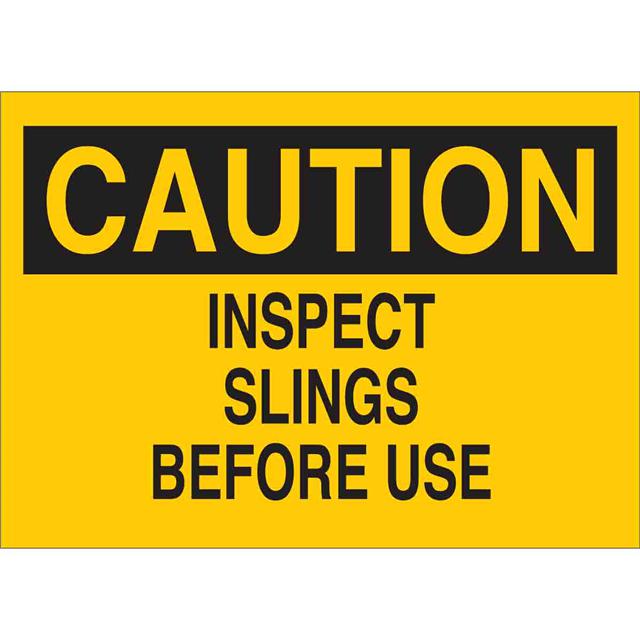 This is manufactured by Brady Corporation. The manufacturer part number is 22901. Label with a size of 10.00" l x 7.00" w (254.0mm x 177.8mm). The product is rohs3 compliant. It is assigned with possible HTSUS value of 3926.90.9985. It is shipped in bulk package . It has a classic black legend, yellow background colour. The product brady®, is a highly preferred choice for users. The product is made from highly stable and reliable polyester. In addition, it is reach unaffected. Its typical moisture sensitivity level is not applicable. A bespoke label is a caution. inspect slings before use label. The product is suitable for use with caution. It has a long 4 weeks standard lead time. The product is designated with the ear99 code number.
