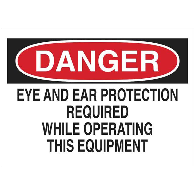 This is manufactured by Brady Corporation. The manufacturer part number is 22973. Label with a size of 10.00" l x 7.00" w (254.0mm x 177.8mm). The product is rohs3 compliant. It is assigned with possible HTSUS value of 3926.90.9985. It is shipped in bulk package . It has a classic black and red legend, white background colour. The product brady®, is a highly preferred choice for users. The product is made from highly stable and reliable polyester. In addition, it is reach unaffected. Its typical moisture sensitivity level is not applicable. A bespoke label is a danger. eye and ear protection required while operating this equipment label. It has a long 4 weeks standard lead time. The product is designated with the ear99 code number.