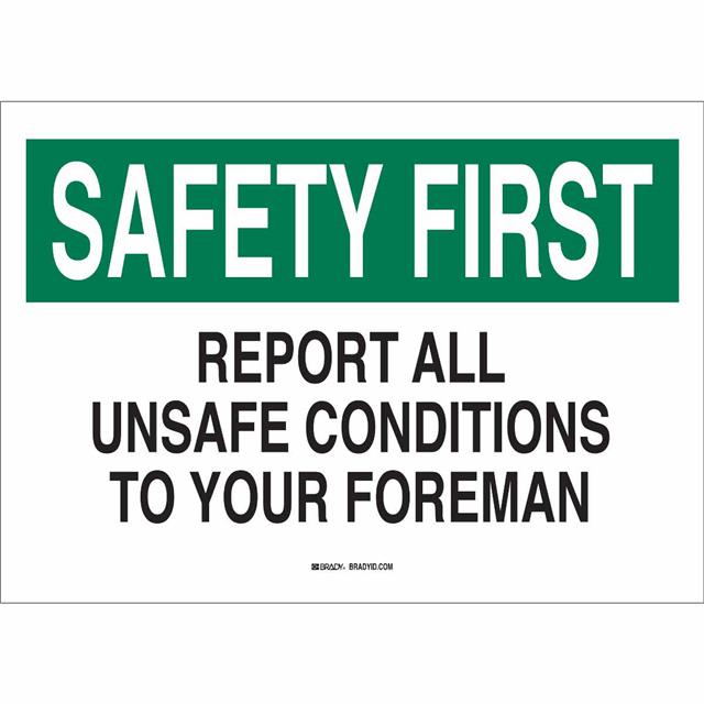 This is manufactured by Brady Corporation. The manufacturer part number is 25323. Label with a size of 10.00" l x 7.00" w (254.0mm x 177.8mm). The product is rohs3 compliant. It is assigned with possible HTSUS value of 3926.90.9985. It is shipped in bulk package . It has a classic black and green legend, white background colour. The product brady®, is a highly preferred choice for users. The product is made from highly stable and reliable polyester. In addition, it is reach unaffected. Its typical moisture sensitivity level is not applicable. A bespoke label is a report all unsafe conditions to your foreman label. It has a long 4 weeks standard lead time. The product is designated with the ear99 code number.