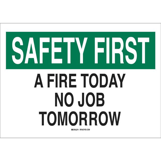 This is manufactured by Brady Corporation. The manufacturer part number is 25689. Label with a size of 14.00" l x 10.00" w (355.6mm x 254.0mm). The product is rohs3 compliant. It is assigned with possible HTSUS value of 3926.90.9985. It is shipped in bulk package . It has a classic black and green legend, white background colour. The product brady®, is a highly preferred choice for users. The product is made from highly stable and reliable polyester. In addition, it is reach unaffected. Its typical moisture sensitivity level is not applicable. A bespoke label is a safety first. a fire today no job tomorrow label. The product is suitable for use with safety. It has a long 4 weeks standard lead time. The product is designated with the ear99 code number.
