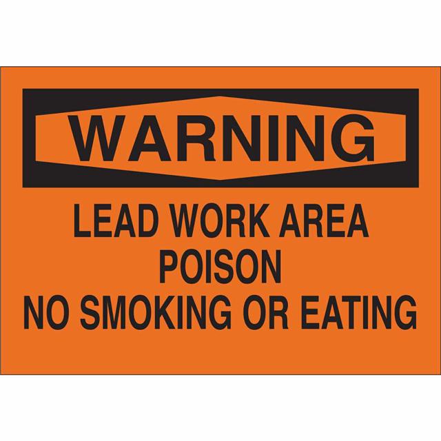 This is manufactured by Brady Corporation. The manufacturer part number is 25740. Label with a size of 10.00" l x 7.00" w (254.0mm x 177.8mm). The product is rohs3 compliant. It is assigned with possible HTSUS value of 3926.90.9985. It is shipped in bulk package . It has a classic black legend, orange background colour. The product brady®, is a highly preferred choice for users. The product is made from highly stable and reliable polyester. In addition, it is reach unaffected. Its typical moisture sensitivity level is not applicable. A bespoke label is a warning. lead work area poison no smoking or eating label. The product is suitable for use with warning. It has a long 4 weeks standard lead time. The product is designated with the ear99 code number.