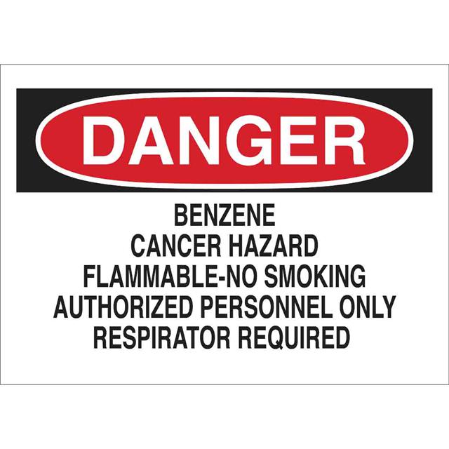 This is manufactured by Brady Corporation. The manufacturer part number is 25777. Label with a size of 14.00" l x 10.00" w (355.6mm x 254.0mm). The product is rohs3 compliant. It is assigned with possible HTSUS value of 3926.90.9989. It has a classic black and red legend, white background colour. The product brady®, is a highly preferred choice for users. The product is made from highly stable and reliable polyester. In addition, it is reach unaffected. Its typical moisture sensitivity level is not applicable. In addition, bulk is the available packaging type of the product. A bespoke label is a danger. benzene cancer hazard flammable- no smoking authorized personnel only respirator required label. The product is suitable for use with danger. It has a long 4 weeks standard lead time. The brady corporation's product offers user-desired applications. The product is designated with the ear99 code number.