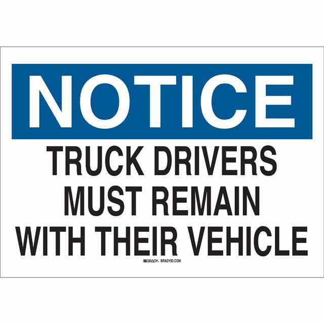 This is manufactured by Brady Corporation. The manufacturer part number is 25834. Label with a size of 14.00" l x 10.00" w (355.6mm x 254.0mm). The product is rohs3 compliant. It is assigned with possible HTSUS value of 3926.90.9985. It is shipped in bulk package . It has a classic black and blue legend, white background colour. The product brady®, is a highly preferred choice for users. The product is made from highly stable and reliable polyester. In addition, it is reach unaffected. Its typical moisture sensitivity level is not applicable. A bespoke label is a notice. truck drivers must remain with their vehicle label. The product is suitable for use with notice. The product is designated with the ear99 code number.