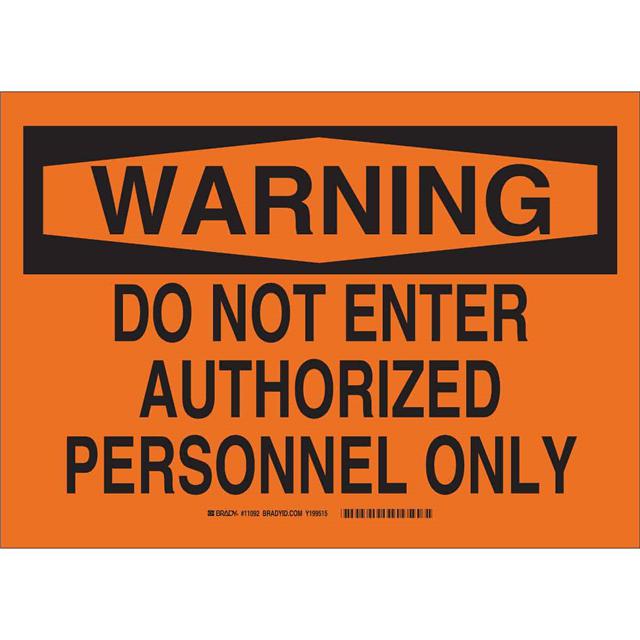 This is manufactured by Brady Corporation. The manufacturer part number is 26641. Label with a size of 10.00" l x 7.00" w (254.0mm x 177.8mm). The product is rohs3 compliant. It is assigned with possible HTSUS value of 3926.90.9989. It has a classic black and red legend, white background colour. The product brady®, is a highly preferred choice for users. The product is made from highly stable and reliable polyester. In addition, it is reach unaffected. Its typical moisture sensitivity level is not applicable. In addition, bulk is the available packaging type of the product. A bespoke label is a warning. do not enter authorized person only label. The product is suitable for use with warning. It has a long 4 weeks standard lead time. The brady corporation's product offers user-desired applications. The product is designated with the ear99 code number.
