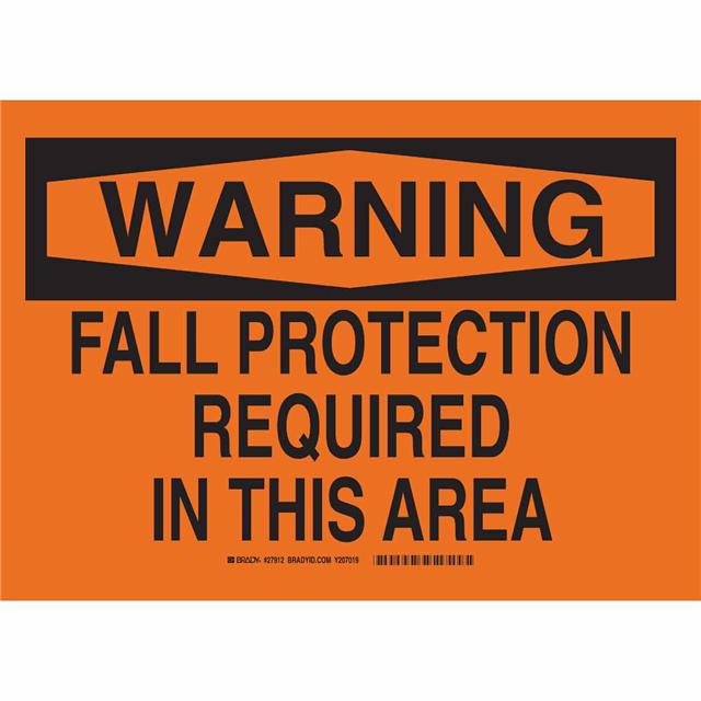 This is manufactured by Brady Corporation. The manufacturer part number is 27914. Label with a size of 14.00" l x 10.00" w (355.6mm x 254.0mm). The product is rohs3 compliant. It is assigned with possible HTSUS value of 3926.90.9985. It is shipped in bulk package . It has a classic black legend, orange background colour. The product brady®, is a highly preferred choice for users. The product is made from highly stable and reliable polyester. In addition, it is reach unaffected. Its typical moisture sensitivity level is not applicable. A bespoke label is a warning. fall protection required in this area label. The product is suitable for use with warning. It has a long 4 weeks standard lead time. The product is designated with the ear99 code number.