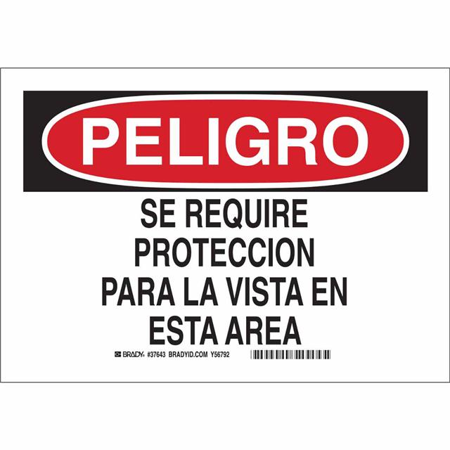 This is manufactured by Brady Corporation. The manufacturer part number is 37643. Label with a size of 10.00" l x 7.00" w (254.0mm x 177.8mm). The product is rohs3 compliant. It is assigned with possible HTSUS value of 3926.90.9985. It is shipped in bulk package . It has a classic black and red legend, white background colour. The product brady®, is a highly preferred choice for users. The product is made from highly stable and reliable polyester. In addition, it is reach unaffected. Its typical moisture sensitivity level is not applicable. A bespoke label is a peligro. se requiere proteccion para la vista en esta area label. The product is suitable for use with danger. It has a long 4 weeks standard lead time. The product is designated with the ear99 code number.
