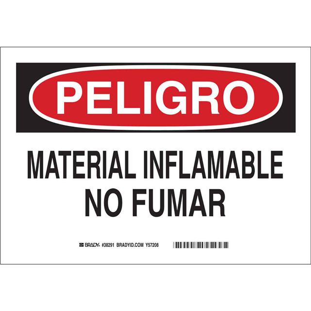 This is manufactured by Brady Corporation. The manufacturer part number is 37655. Label with a size of 10.00" l x 7.00" w (254.0mm x 177.8mm). The product is rohs3 compliant. It is assigned with possible HTSUS value of 3926.90.9985. It is shipped in bulk package . It has a classic black and red legend, white background colour. The product brady®, is a highly preferred choice for users. The product is made from highly stable and reliable polyester. In addition, it is reach unaffected. Its typical moisture sensitivity level is not applicable. A bespoke label is a peligro. flammable material no smoke label. The product is suitable for use with danger. It has a long 4 weeks standard lead time. The product is designated with the ear99 code number.