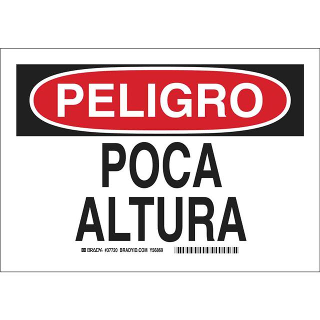 This is manufactured by Brady Corporation. The manufacturer part number is 37720. Label with a size of 10.00" l x 7.00" w (254.0mm x 177.8mm). The product is rohs3 compliant. It is assigned with possible HTSUS value of 3926.90.9985. It is shipped in bulk package . It has a classic black and red legend, white background colour. The product brady®, is a highly preferred choice for users. The product is made from highly stable and reliable polyester. In addition, it is reach unaffected. Its typical moisture sensitivity level is not applicable. A bespoke label is a peligro. poca altura label. The product is suitable for use with danger. It has a long 4 weeks standard lead time. The product is designated with the ear99 code number.