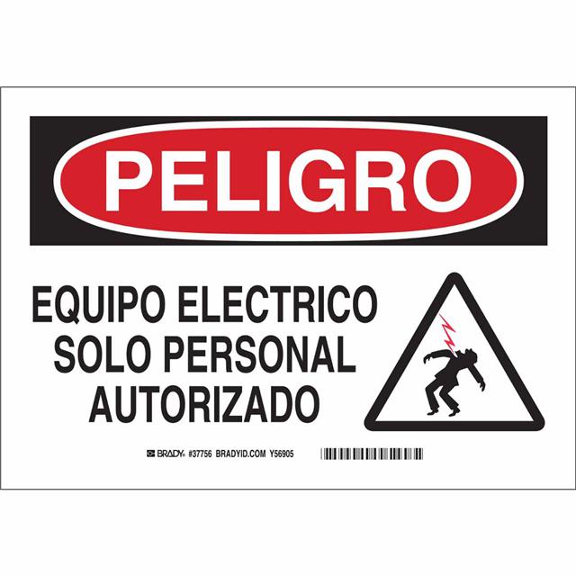 This is manufactured by Brady Corporation. The manufacturer part number is 37756. Label with a size of 10.00" l x 7.00" w (254.0mm x 177.8mm). The product is rohs3 compliant. It is assigned with possible HTSUS value of 4911.99.8000. It is shipped in bulk package . It has a classic black and red legend, white background colour. The product brady®, is a highly preferred choice for users. The product is made from highly stable and reliable polyester. In addition, it is reach unaffected. Its typical moisture sensitivity level is not applicable. A bespoke label is a danger/peligro. elec equip auth/equipo electrico solo personal label. The product is suitable for use with danger. It has a long 4 weeks standard lead time. The product is designated with the ear99 code number.