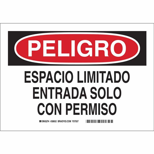 This is manufactured by Brady Corporation. The manufacturer part number is 38652. Label with a size of 14.00" l x 10.00" w (355.6mm x 254.0mm). The product is rohs3 compliant. It is assigned with possible HTSUS value of 3926.90.9985. It is shipped in bulk package . It has a classic black and red legend, white background colour. The product brady®, is a highly preferred choice for users. The product is made from highly stable and reliable polyester. In addition, it is reach unaffected. Its typical moisture sensitivity level is not applicable. A bespoke label is a peligro. espacio limitado entrada solo con permiso label. The product is suitable for use with danger. The product is designated with the ear99 code number.