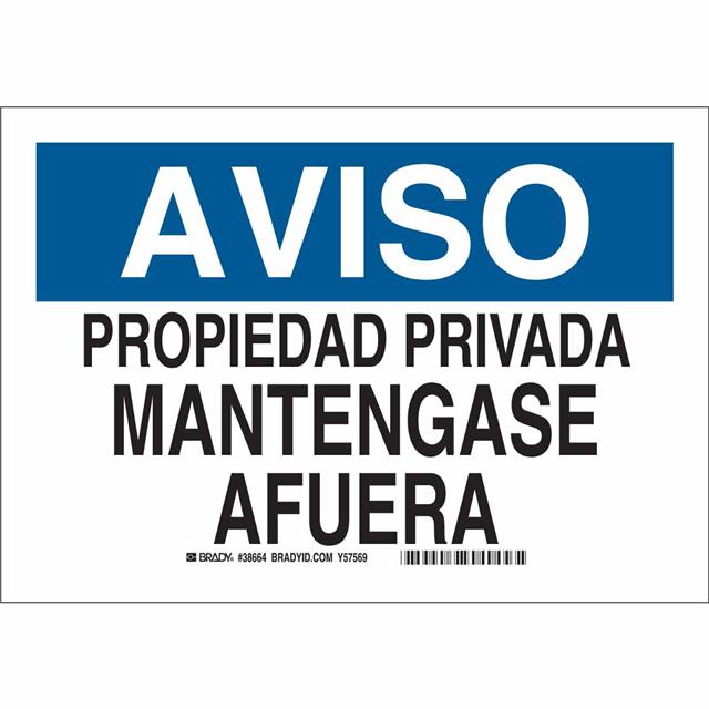 This is manufactured by Brady Corporation. The manufacturer part number is 38664. Label with a size of 14.00" l x 10.00" w (355.6mm x 254.0mm). The product is rohs3 compliant. It is assigned with possible HTSUS value of 3926.90.9985. It is shipped in bulk package . It has a classic black and blue legend, white background colour. The product brady®, is a highly preferred choice for users. The product is made from highly stable and reliable polyester. In addition, it is reach unaffected. Its typical moisture sensitivity level is not applicable. A bespoke label is a aviso. propiedad privada mantengase afuera label. The product is suitable for use with notice. It has a long 4 weeks standard lead time. The product is designated with the ear99 code number.