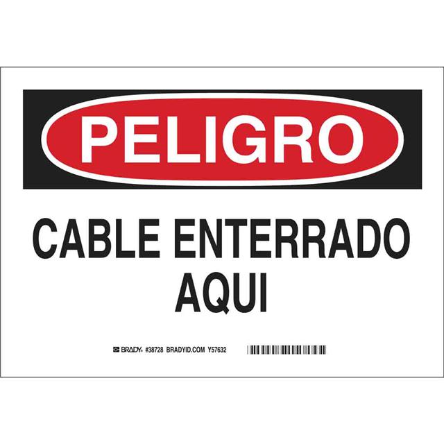 This is manufactured by Brady Corporation. The manufacturer part number is 38728. Label with a size of 14.00" l x 10.00" w (355.6mm x 254.0mm). The product is rohs3 compliant. It is assigned with possible HTSUS value of 3926.90.9985. It is shipped in bulk package . It has a classic black and red legend, white background colour. The product brady®, is a highly preferred choice for users. The product is made from highly stable and reliable polyester. In addition, it is reach unaffected. Its typical moisture sensitivity level is not applicable. A bespoke label is a peligro. cable enterrado aqui label. The product is suitable for use with danger. The product is designated with the ear99 code number.