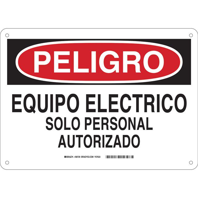 This is manufactured by Brady Corporation. The manufacturer part number is 38729. Label with a size of 14.00" l x 10.00" w (355.6mm x 254.0mm). The product is rohs3 compliant. It is assigned with possible HTSUS value of 3926.90.9989. It has a classic black and red legend, white background colour. The product brady®, is a highly preferred choice for users. The product is made from highly stable and reliable polyester. In addition, it is reach unaffected. Its typical moisture sensitivity level is not applicable. In addition, bulk is the available packaging type of the product. A bespoke label is a peligro. equipo electrico solo personal autorizado label. The product is suitable for use with danger. It has a long 4 weeks standard lead time. The brady corporation's product offers user-desired applications. The product is designated with the ear99 code number.