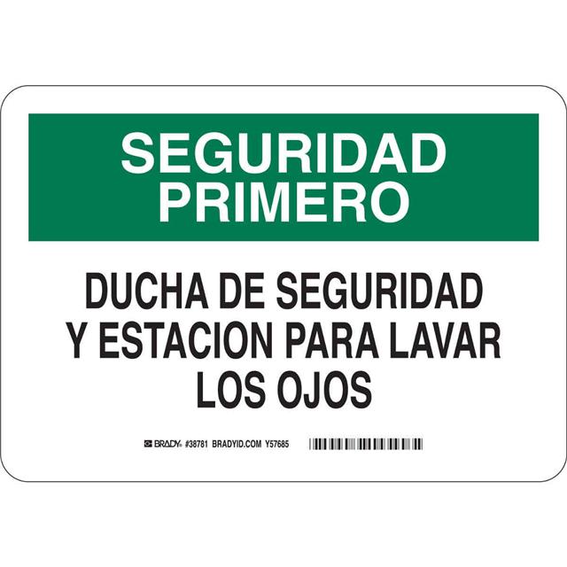 This is manufactured by Brady Corporation. The manufacturer part number is 38744. Label with a size of 14.00" l x 10.00" w (355.6mm x 254.0mm). The product is rohs3 compliant. It is assigned with possible HTSUS value of 3926.90.9985. It is shipped in bulk package . It has a classic black and green legend, white background colour. The product brady®, is a highly preferred choice for users. The product is made from highly stable and reliable polyester. In addition, it is reach unaffected. Its typical moisture sensitivity level is not applicable. A bespoke label is a seguridad primero. ducha de seguridad y estacion para lavar los ojos label. The product is suitable for use with notice. It has a long 4 weeks standard lead time. The product is designated with the ear99 code number.