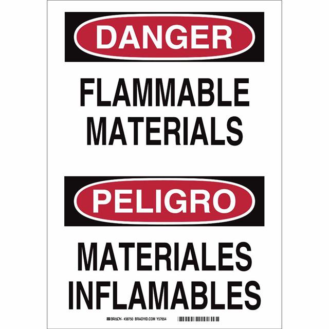 This is manufactured by Brady Corporation. The manufacturer part number is 38750. Label with a size of 14.00" l x 10.00" w (355.6mm x 254.0mm). The product is rohs3 compliant. It is assigned with possible HTSUS value of 3926.90.9985. It is shipped in bulk package . It has a classic black and red legend, white background colour. The product brady®, is a highly preferred choice for users. The product is made from highly stable and reliable polyester. In addition, it is reach unaffected. Its typical moisture sensitivity level is not applicable. A bespoke label is a danger/peligro. flammable materials/materiales inflamables label. The product is suitable for use with danger. The product is designated with the ear99 code number.