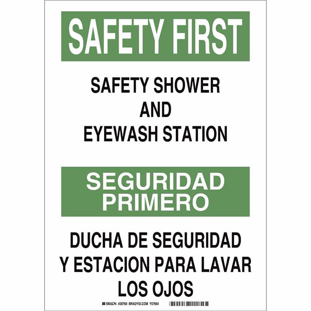 This is manufactured by Brady Corporation. The manufacturer part number is 38760. Label with a size of 14.00" l x 10.00" w (355.6mm x 254.0mm). The product is rohs3 compliant. It is assigned with possible HTSUS value of 3926.90.9989. It has a classic black and green legend, white background colour. The product brady®, is a highly preferred choice for users. The product is made from highly stable and reliable polyester. In addition, it is reach unaffected. Its typical moisture sensitivity level is not applicable. In addition, bulk is the available packaging type of the product. A bespoke label is a safety first seguridad primero. safety shower and eyewash station ducha de seguridad y estacion para lavar los ojos label. The product is suitable for use with warning. It has a long 4 weeks standard lead time. The brady corporation's product offers user-desired applications. The product is designated with the ear99 code number.