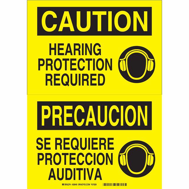 This is manufactured by Brady Corporation. The manufacturer part number is 38940. Label with a size of 14.00" l x 10.00" w (355.6mm x 254.0mm). The product is rohs3 compliant. It is assigned with possible HTSUS value of 3926.90.9985. It is shipped in bulk package . It has a classic black legend, yellow background colour. The product brady®, is a highly preferred choice for users. The product is made from highly stable and reliable polyester. In addition, it is reach unaffected. Its typical moisture sensitivity level is not applicable. A bespoke label is a caution/precaucion. hearing protection required/se requiere proteccion auditiva label. The product is suitable for use with caution. It has a long 4 weeks standard lead time. The product is designated with the ear99 code number.