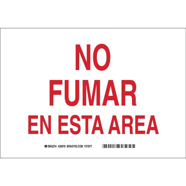 This is manufactured by Brady Corporation. The manufacturer part number is 38978. Label with a size of 14.00" l x 10.00" w (355.6mm x 254.0mm). The product is rohs3 compliant. It is assigned with possible HTSUS value of 3926.90.9985. It is shipped in bulk package . It has a classic red legend, white background colour. The product brady®, is a highly preferred choice for users. The product is made from highly stable and reliable polyester. In addition, it is reach unaffected. Its typical moisture sensitivity level is not applicable. A bespoke label is a no fumar en esta area label. The product is suitable for use with warning. The product is designated with the ear99 code number.