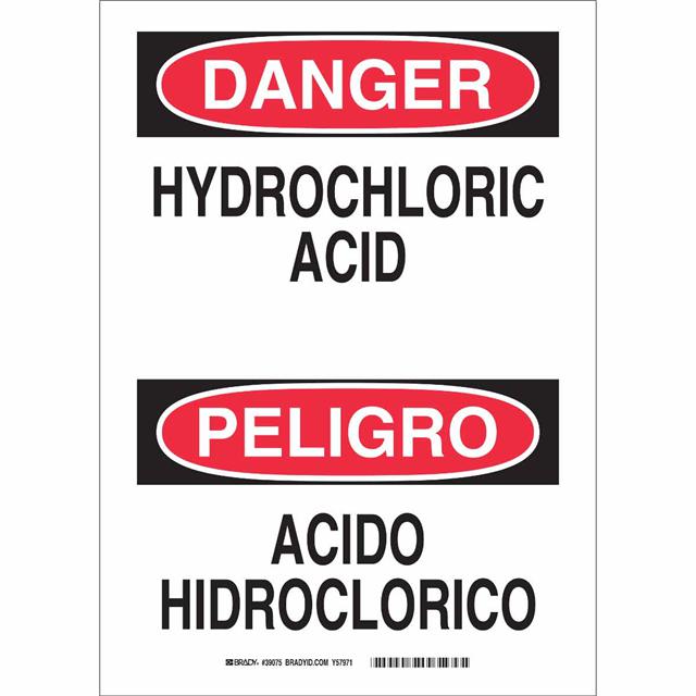This is manufactured by Brady Corporation. The manufacturer part number is 39075. Label with a size of 14.00" l x 10.00" w (355.6mm x 254.0mm). The product is rohs3 compliant. It is assigned with possible HTSUS value of 3926.90.9985. It is shipped in bulk package . It has a classic black and red legend, white background colour. The product brady®, is a highly preferred choice for users. The product is made from highly stable and reliable polyester. In addition, it is reach unaffected. Its typical moisture sensitivity level is not applicable. A bespoke label is a danger/peligro. hydrochloric acid/acido hidroclorico label. The product is suitable for use with danger. It has a long 4 weeks standard lead time. The product is designated with the ear99 code number.